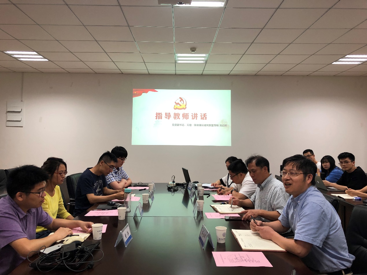 接下来,学院党委副书记、我室主任吴启晖院长讲话表示,我室研究生党支部的成立,是学院对实验室近年来工作的肯定和鼓励,在此代表实验室全体教师和学生对学院党委表示感谢,同时也提出了建立纵向党支部的出发点和优势所在。此外,吴院长还就可能存在的现实问题指出,一定要在生活和学习中发挥党员研究生的先锋模范作用,高标准高要求的进行科研工作。