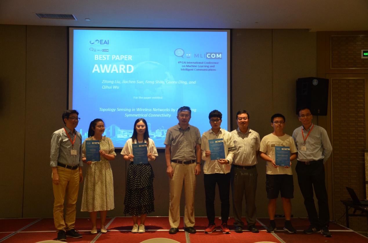 24日晚,大会举办了Best Paper Award Ceremony,从会议的64篇论文中挑选出4篇作为Best Paper。我室本科生刘子彤凭借其论文“Topology Sensing in Wireless Networks by Leveraging Symmetrical Connectivity”脱颖而出,获得MLICOM 2019 Best Paper。