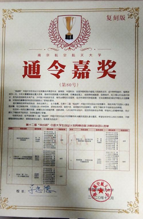 2020年12月15日,南京航空航天大学2020年度学生表彰大会于体育馆举行,我室共荣获了校长通令嘉奖,群星创新奖以及研究生“五好”导学团队三个奖项。无论是在科研方面还是团队建设上,我室均取得了优异的成绩。这是我室全体师生共同努力的结果,这次的表彰是对过去一年的总结,亦是对未来的激励。