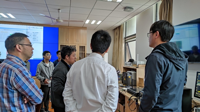 首先,吴启晖教授介绍了我室的团队建设及科研项目等基本情况,陈爽主任也对中船重工709所近几年的业务进行了介绍,双方同时进行了详细的交流和讨论。随后,我室教师从遥控信号测向识别、测向设备、校园监测定位设备、集群无人机探测与识别等方面进行了汇报。李建峰副教授重点介绍了遥控信号测向识别研究进展,且对测向设备、校园分布式监测信号定位设备进行了简单的介绍,并和学生一起就相应平台设备的功能进行了实际的演示操作;晋本周副教授介绍了集群无人机探测与识别技术的研究情况。