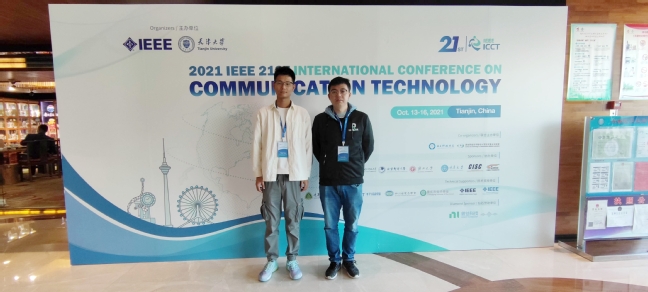 2021年10月13日至16日,由IEEE和天津大学主办的第 21 届 IEEE 通信技术国际会议 (2021 IEEE 21st International Conference on Communication Technology, 21st IEEE ICCT)在中国天津召开。我室学生杜孝夫和杨阳赴天津参会,并汇报了各自的最新研究成果。