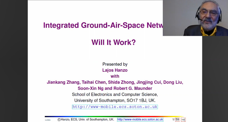 2022年3月21日下午,应我校副校长、实验室主任吴启晖教授邀请,英国皇家工程院院士南安普顿大学Lajos Hanzo教授与我室师生进行了线上交流,并做了题为“Space, Air, Ground Integrated Networking: From Single- to Multi-Component Pareto Optimization”的学术报告。