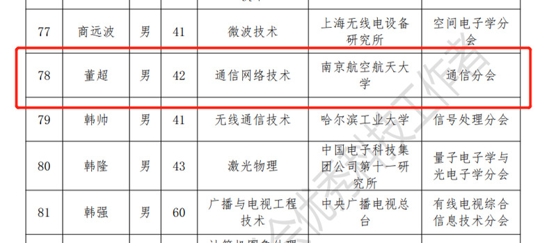 2022年6月22日,中国电子学会公布了第九届中国电子学会优秀科技工作者入选名单,基于近年来在无线自组织网络、无人机集群组网等方面的研究工作,经中国电子学会通信分会推荐,我室副主任董超教授获中国电子学会优秀科技工作者荣誉称号。此次评选依据了《中国电子学会优秀科技工作者评选表彰办法》,经中国电子学会优秀科技工作者评选委员会评选,第十届十四次常务理事会审议批准,共选出10名“十佳中国电子学会优秀科技工作者”和90名“中国电子学会优秀科技工作者”,将在8月14日-16日举办的第十六届中国电子信息年会上予以表彰。