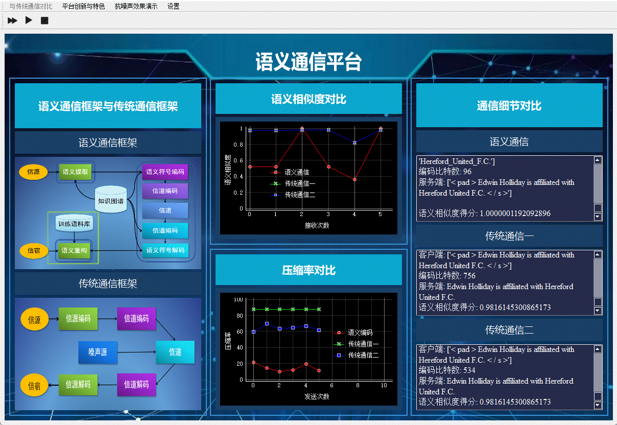 本项目由我室周福辉老师指导,我室硕士研究生李怡昊,钟翊辰同学,南京邮电大学学生隋润禾、王午梅共同完成。项目面向高可靠性和高传输速率的6G移动通信系统应用需求,以后香农时代移动通信新范式为研究背景,以建立可解释和信息超高压缩率为目标,提出一种知识图谱驱动的认知语义通信新范式。在此基础上,以语义的高效传递为导向,在误码率、误比特率等香农信息论指导下的通信质量评估机制无法衡量真实的语义传递质量的情况下,探索一种面向语义恢复程度的通信质量评估机制。本项目搭建软硬件平台证实了我们所提认知语义通信系统的高可靠,高传输率等优势,对未来6G移动通信系统研究具有极大促进作用。