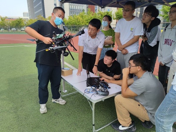 首先,工程师对参加培训的同学们进行了无人机手动操控的演示。手动控制是无人机的基础操控技术,能够在卫星定位信号出现问题时保证无人机的正常飞行,同时也是处理紧急情况的必备技能。参加培训的同学们在工程师的指导下亲自上手试飞无人机,在保障飞行安全的同时,让同学们对无人机的操控有了新的认识。