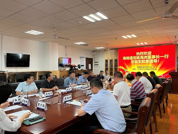 2022年9月29日上午,广州海格通信集团(以下简称“海格”)董事长杨海洲,总经理余青松,副总经理蒋振东,总经理助理陈朝晖,秘书宗利林等一行6人莅临我室进行参观与交流。我校副校长、实验室主任吴启晖教授,学校装备工程部黄国平部长,学院副院长张小飞教授,学校李广侠特聘教授,我室副主任董超教授、周福辉教授、朱秋明教授,李建峰副教授、屈毓锛副教授、贾子晔副教授,刘天星工程师、殷晨宇工程师等参与了本次交流活动。海格是我室长期的合作伙伴,在多个国防项目上有深入的合作,我室也承担了海格的多项企业委托课题。