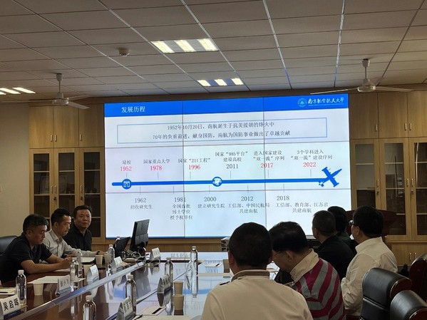会议开始,吴启晖教授对海格各位领导与专家的到来表示了热烈欢迎。随后,黄国平部长介绍了学校的总体情况并对我校无人机的研制历程进行了详细介绍,接着,董超教授从实验室发展历程、标志性成果与人才培养等方面介绍了实验室的整体情况。在介绍完学校和实验室情况之后,李建峰副教授、屈毓锛副教授、殷晨宇工程师等分别对无人机测向仪、机载认知无线电台、反无人机蜂群这三个实验室与海格已经或潜在的合作产品进行了详细介绍与演示。