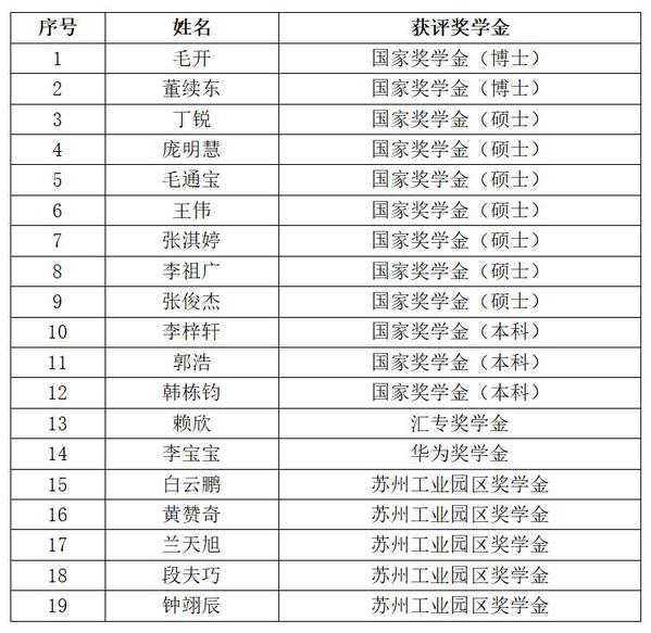 相关奖学金及获奖名单如下: