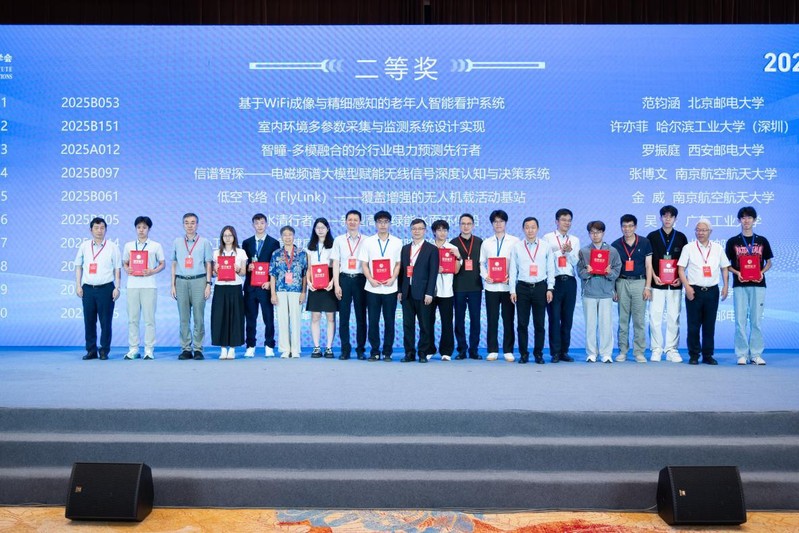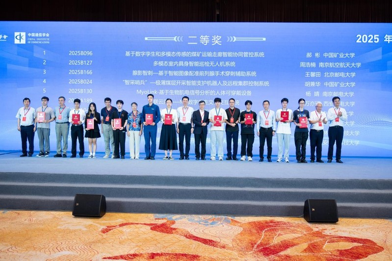我室周福辉教授指导的周浩楠团队“多模态室内具身智能巡检无人机系统”项目、张博文团队“信谱智探-电磁频谱大模型赋能的无线信号深度认知与决策系统”项目、冯斯梦副研究员指导的金威团队“低空飞络(FlyLink)--覆盖增强的无人机载活动基站”项目荣获二等奖。
