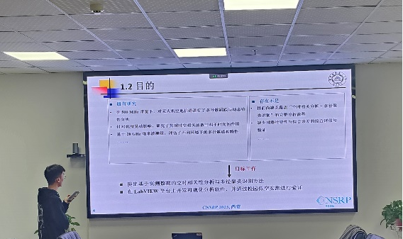 张绍龙做了主题为《基于LabVIEW的低空信道特性分析软件》的报告。该报告提出了一种基于实测数据的信道特性分析方法,并开发了具备模块化与可视化功能的信道特性分析软件,为低空通信网络的建模与性能评估提供了系统化实测平台。