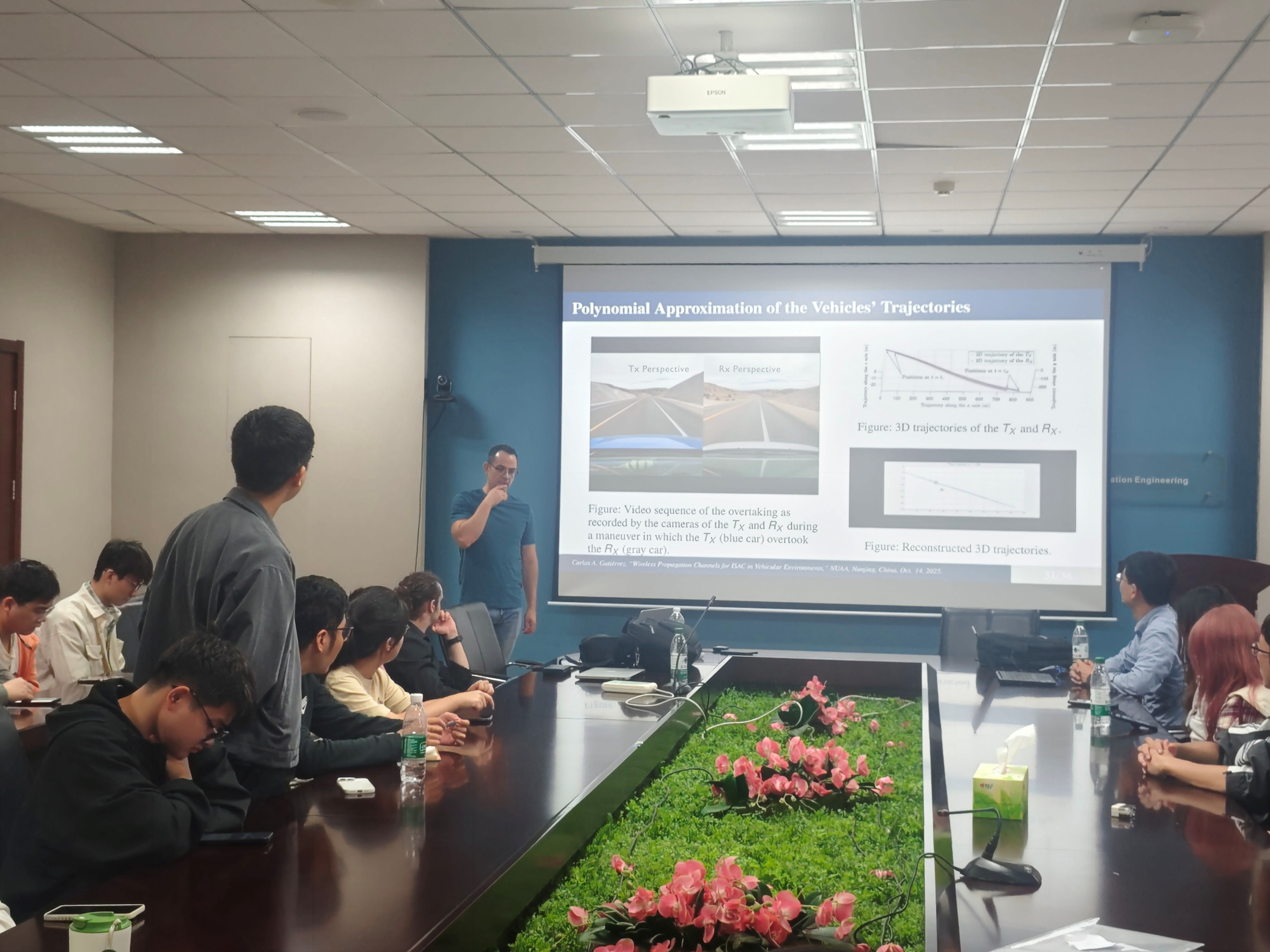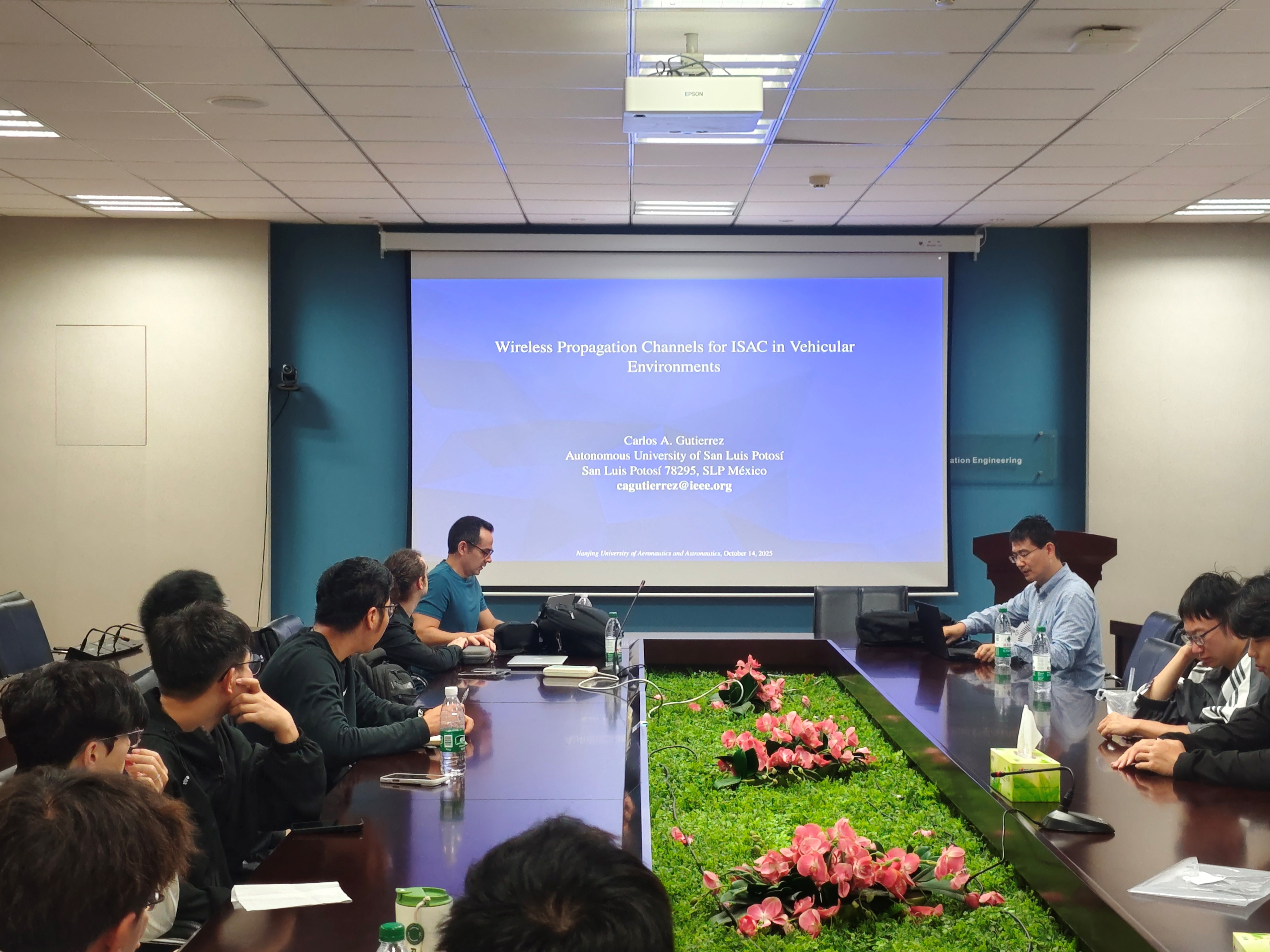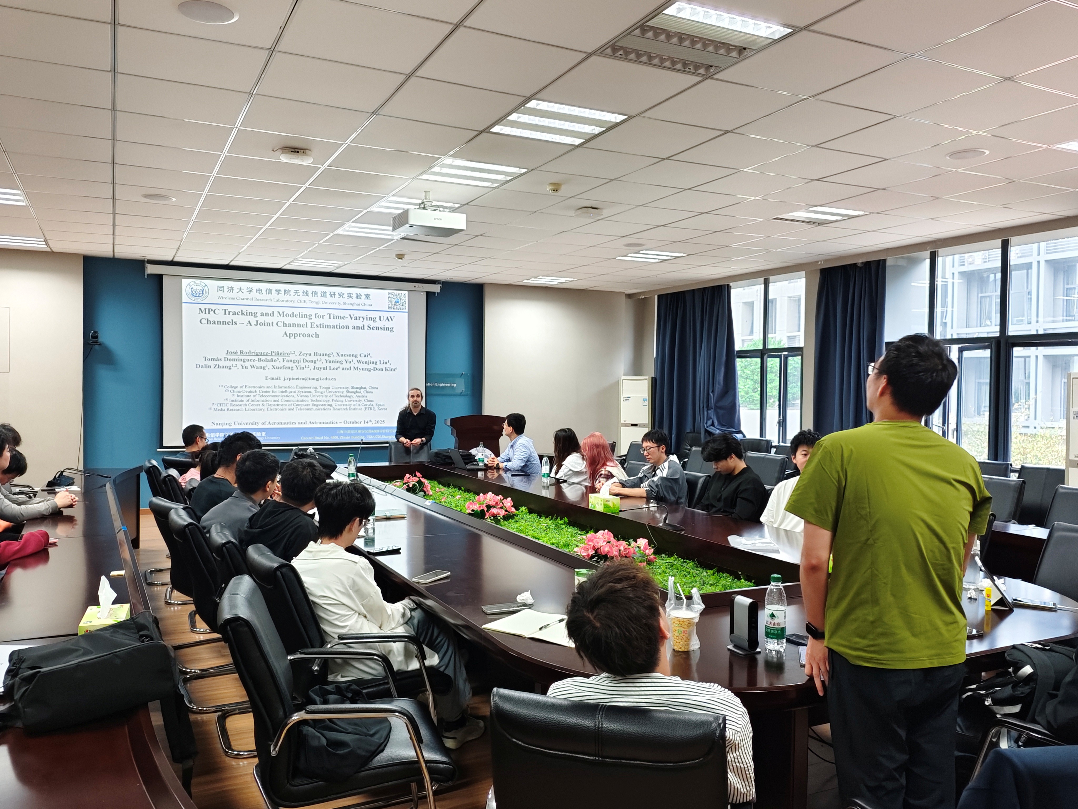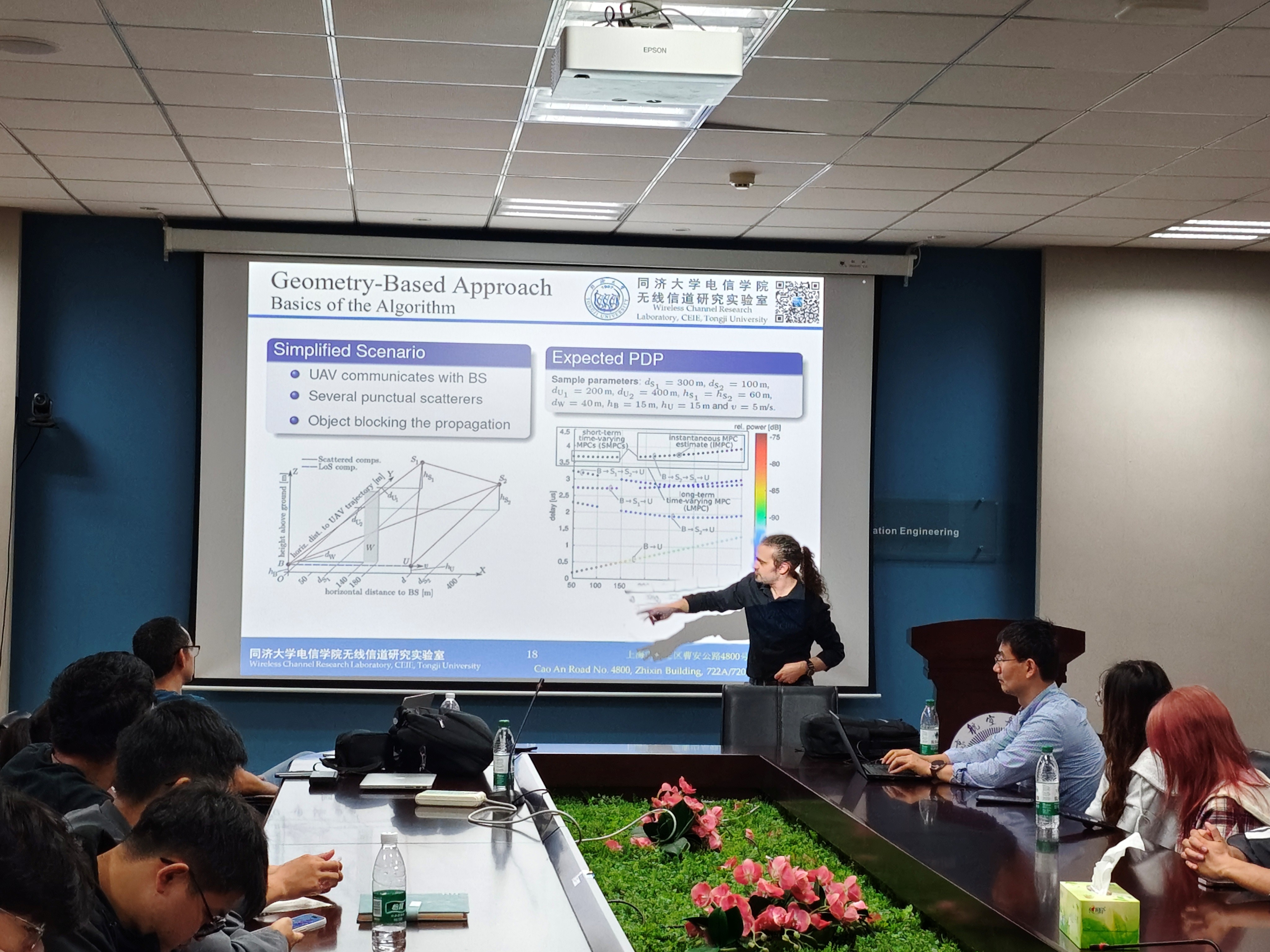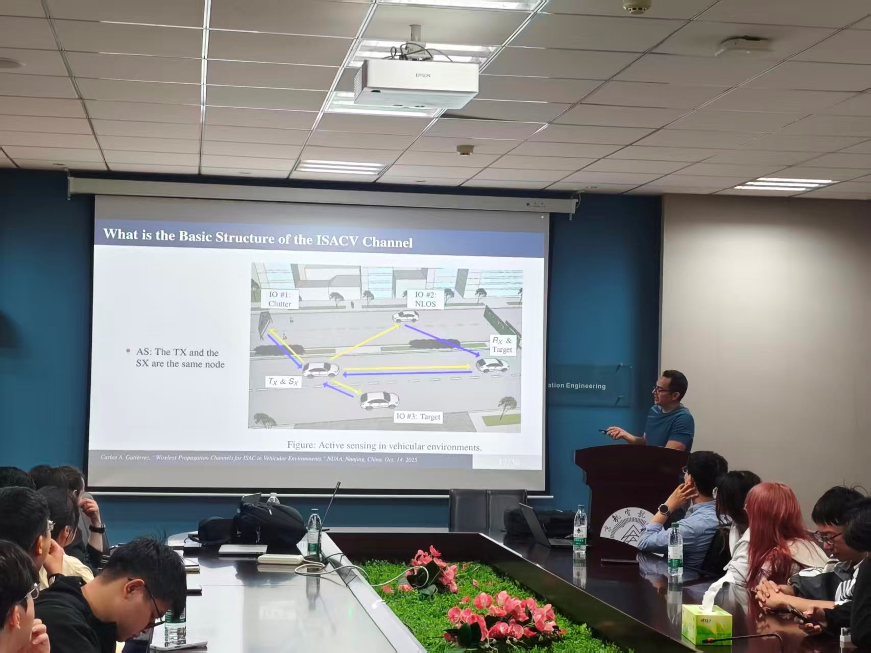 在专题报告环节,Carlos教授以“车载环境下ISAC的无线传播信道”为主题,从ISAC技术的基本原理与核心特性切入,结合UASLP正在推进的车载ISAC专项研究项目,重点讨论了ISAC信道测量与建模相关的进展与挑战。José教授则以“时变无人机信道的MPC跟踪与建模——一种联合信道估计与感知方法”为题,重点介绍同济大学无线信道研究实验室开发的无人机时变信道联合建模方法与环境中主要散射体的检测方法,并通过真实场景下的无人机实测数据,直观展示了该方法在信道估计精度、实时性方面的优势。