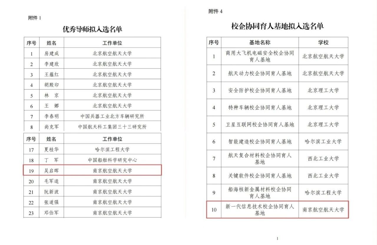 近日,工信部办公厅公布了2025年度工程硕博士培养“五个100”计划有关项目获奖名单,我室主任吴启晖教授入选优秀导师。